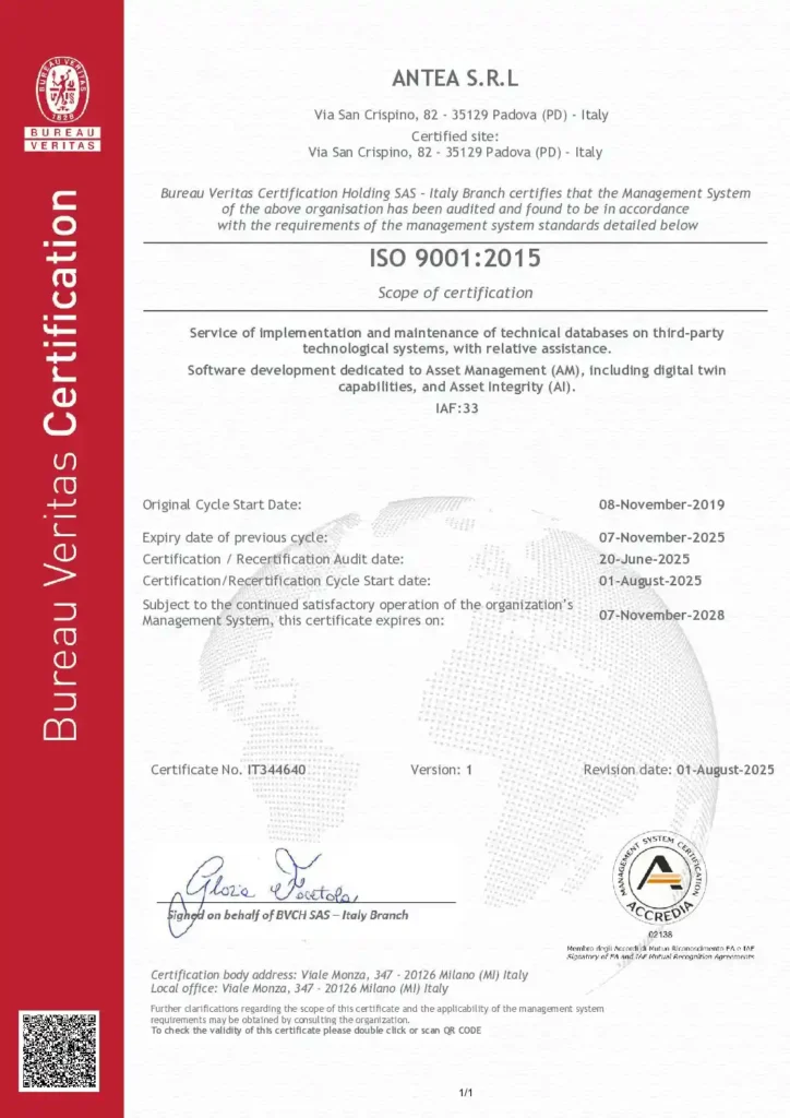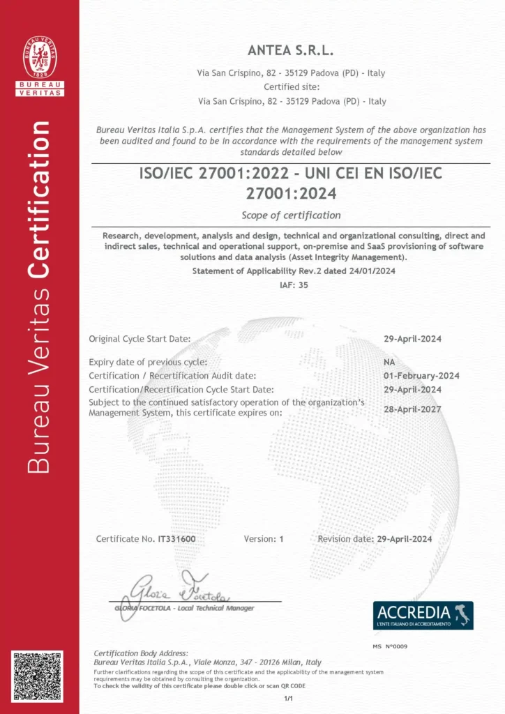 Antea’s certification to this standard demonstrates that our AIM, RBI, and IDMS solutions fall within the criteria for a QMS.